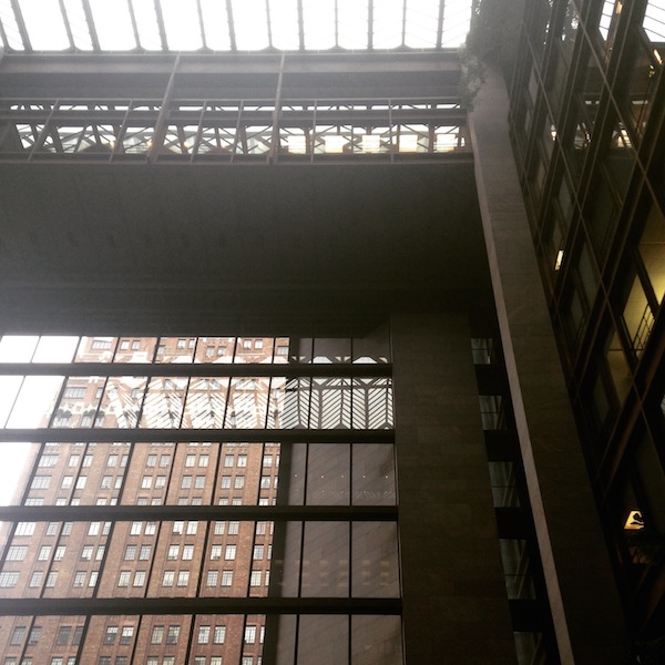 Walking east from Grand Central, a short tour of proto-, High, and proto-Post modernism, courtesy Raymond Hood, Harrison & Abramovitz, Kevin Roche and John Dinkeloo. Harrison and Roche both worked on the UN Secretariat as well, credited to Oscar Niemeyer and Le Corbusier.