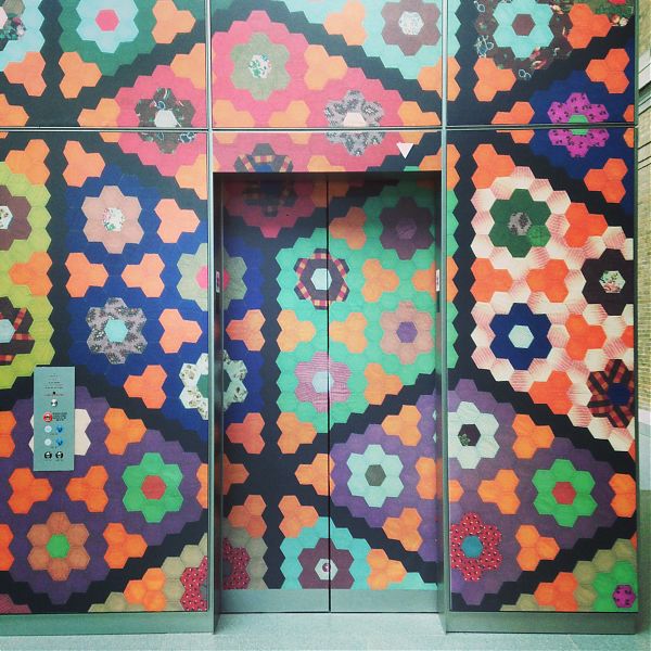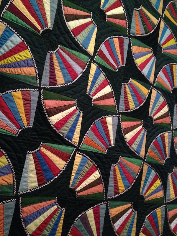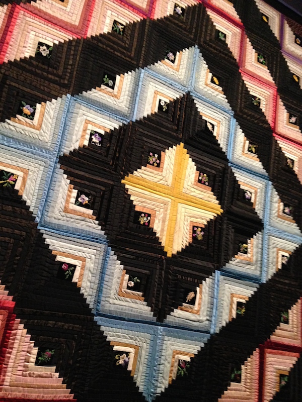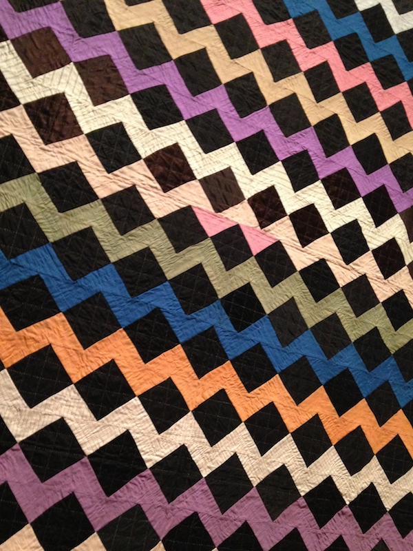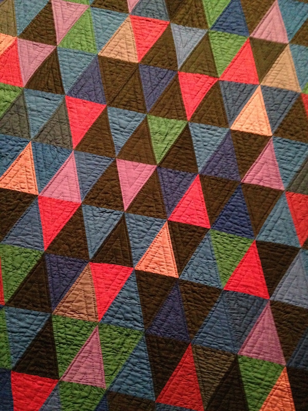 From the elevator cab to the smoky gray walls, the MFA Boston’s current show Quilts and Color is a riot of vibrating hues, clever geometries and optical illusion. Curators have dosed their wall texts heavily with color theory, and installed key works of Op Art around the galleries, but the connections are both obvious and unnecessary. I know it sounds like a starring-Dame-Judi-Dench sort of exhibit, but like Judi Dench, always worth watching.