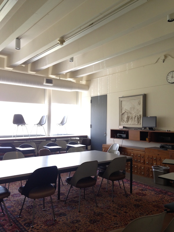 — Alexandra Lange (@LangeAlexandra) May 24, 2014Oddly, this was my fourth LeWitt experience of the week, including the Yale University Art Gallery, Dia:Beacon, and LeWitt + Charles Moore at the Williams Museum of Art. Yale’s several black-and-white LeWitts similarly gain strength from architectural juxtaposition. There’s one in the lobby, its grid contrasting with Louis Kahn’s triangular concrete grid ceiling, and one in the new/old wing, orthogonal against a set of neo-classical arches. As I wandered, I began to tweet.